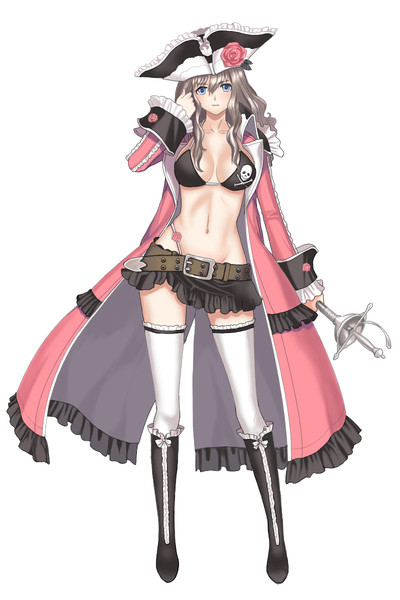 大人気ゲーム「シャイニング・アーク」より女海賊"絶海の女豹"ベルベットが 宝箱に腰掛け艶やかに登場です。 海賊帽にゴージャスな黒ビキニと超ミニスカなコスチューム。 彼女の柔らかな微笑みに視線はもう釘付けです。